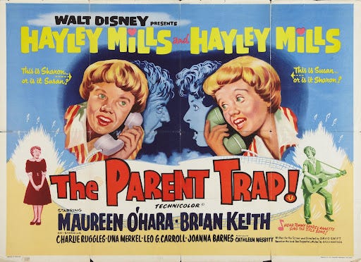 resulta que o filme que todos conhecemos, estrelado por duas lindsay lohan pré-adolescentes, na verdade um remake do longa de mesmo nome (parent trap, em inglês), de 1961, produzido pelos estudios disney. claro que fui buscar para ver, no disney plus. o filme é uma fofura só, desde a animação da abertura, até a atuação de hayley mills, tão perfeita no papel de gêmeas que eu só me toquei que não eram duas meninas lá pelo meio do filme. os efeitos especiais estão incríveis, se pensamos que é um filme de mais de 60 anos.